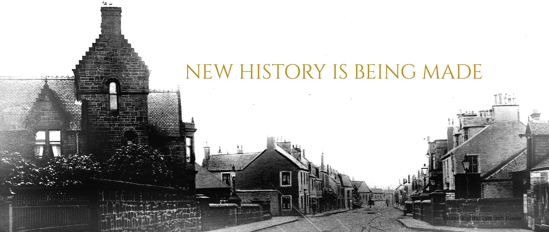 Lamlash House (formerly Bank House) was commissioned by Robert Carmichael Mitchell, Newmilns Bank Agent and Glasgow businessman. The house was built between 1889 and 1890 on a piece of land purchased in December 1888 from Miss Martha Brown of Lanfine Estate for £118 19 shillings and 8 pence as an operational private bank and dwelling house.